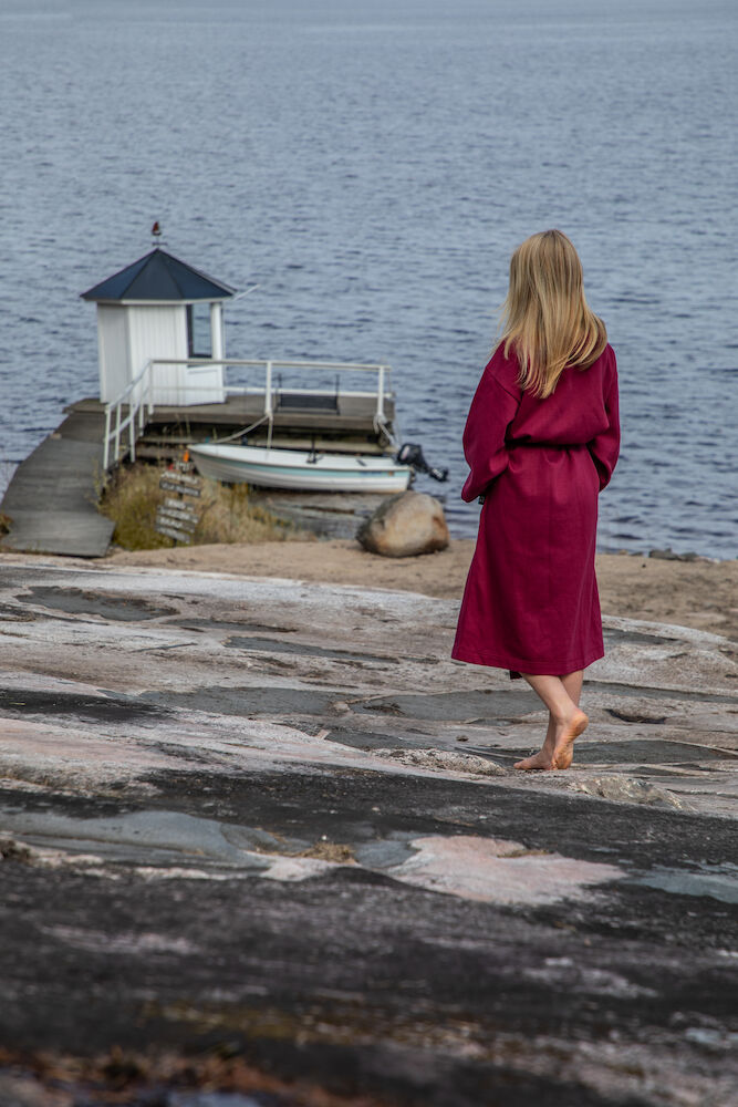 Detta är en underbar hybridrock i collegetyg. Den passar lika bra att bära efter träning, bad eller bara till att mysa i.
