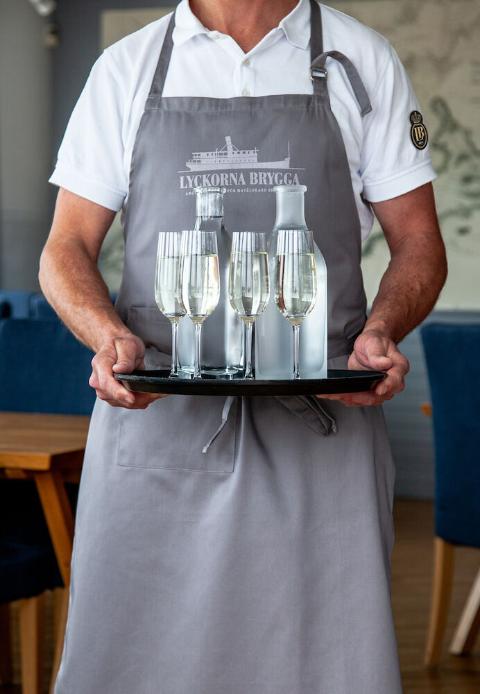Mycket praktiskt förkläde av 65 % polyester och 35 % bomull med reglerbart nackband. Praktisk ficka till höger om mitten.