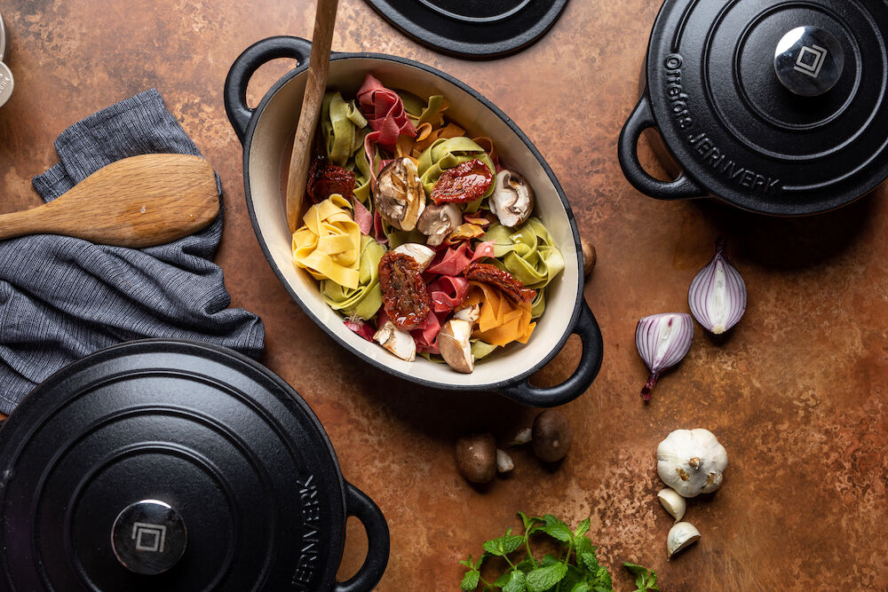 Emaljerad gjutjärnsgryta. En gedigen gryta som passar både långkok och vardagsmat.