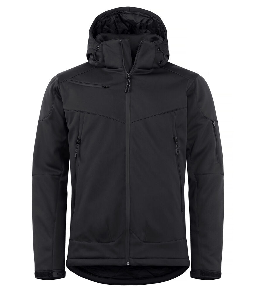 Bekväm och modern vadderad softshelljacka med en avtagbar och justerbar huva. Förböjda ärmar för bättre rörlighet. Fyra yttre fickor med vattentäta dragkedjor och två innerfickor, en med dragkedja och en med nät. Kardborrejusterbara muddar och reflexdetaljer på baksidan. Inkluderar svart foder och utrustad med en brodyrdragkedja.