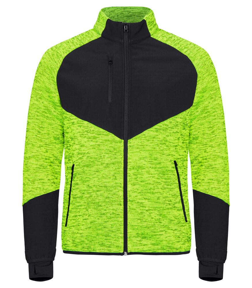 En varm och härlig stickad fleecejacka med valda delar i softshell. Tre ytterfickor med dragkedja och två stora innerfickor. Elastiska inre muddar med tumhål och ett vikbart reflexband. Hängare i nacken och en avtagbar nacketikett för att enkelt kunna addera egen avsändare.