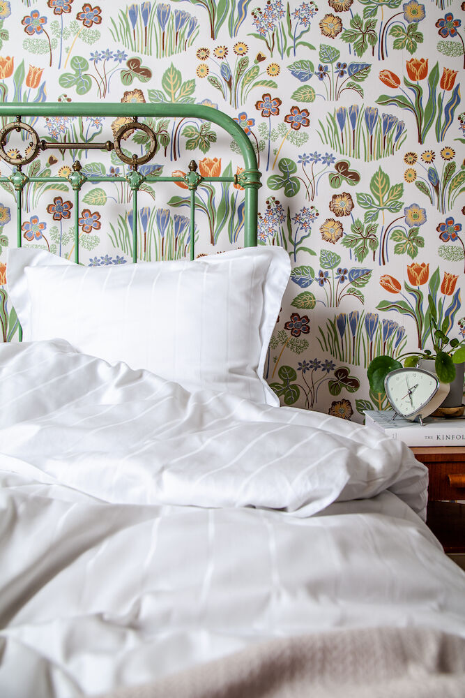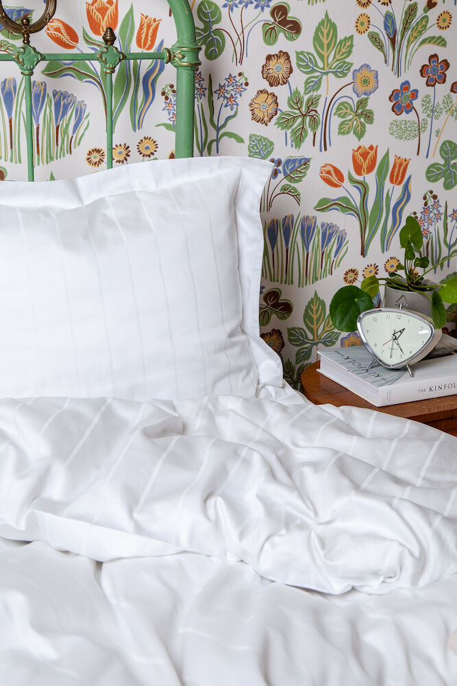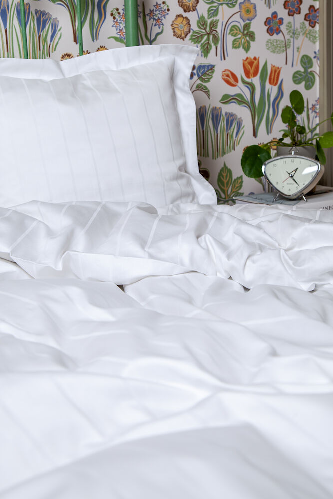 Exklusivt bäddset av bomullsatin, lite högre trådtäthet än vanliga satinbäddset tillsammans med en smal rand ton i ton gör det lyxigt och mjukt. Kommer även i king size som innehåller två örngott.