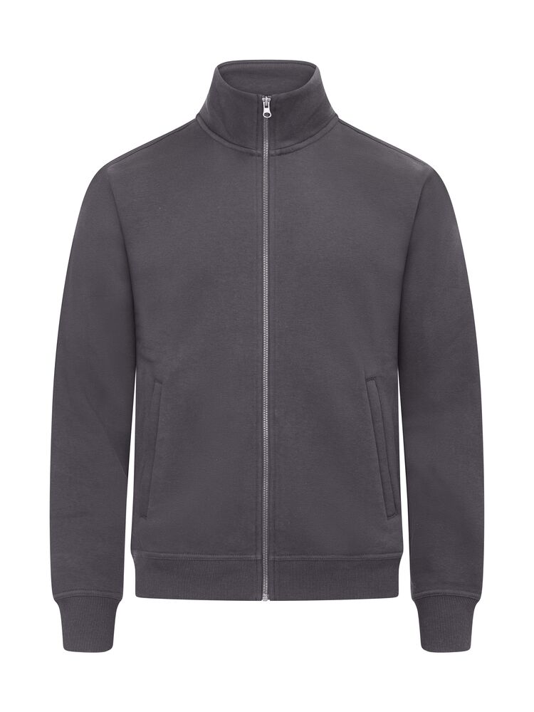 Unisex cardigan med hel dragkedja, gjord av en blandning av bomull och återvunnen polyester. Har en högre hals för komfort, en SBS-dragkedja med metall-look och två fickor med dragkedja framtill. Den elastiska 2x2-ribben har dubbelsömmar vid ärmslut och nederkant. Inkluderar nackband i twill, hängögla och en lätt avtagbar nacketikett för ommärkning. Det mjuka, stabiliserade tyget är designat för intensiv tvätt och har anti-pilling-egenskaper.