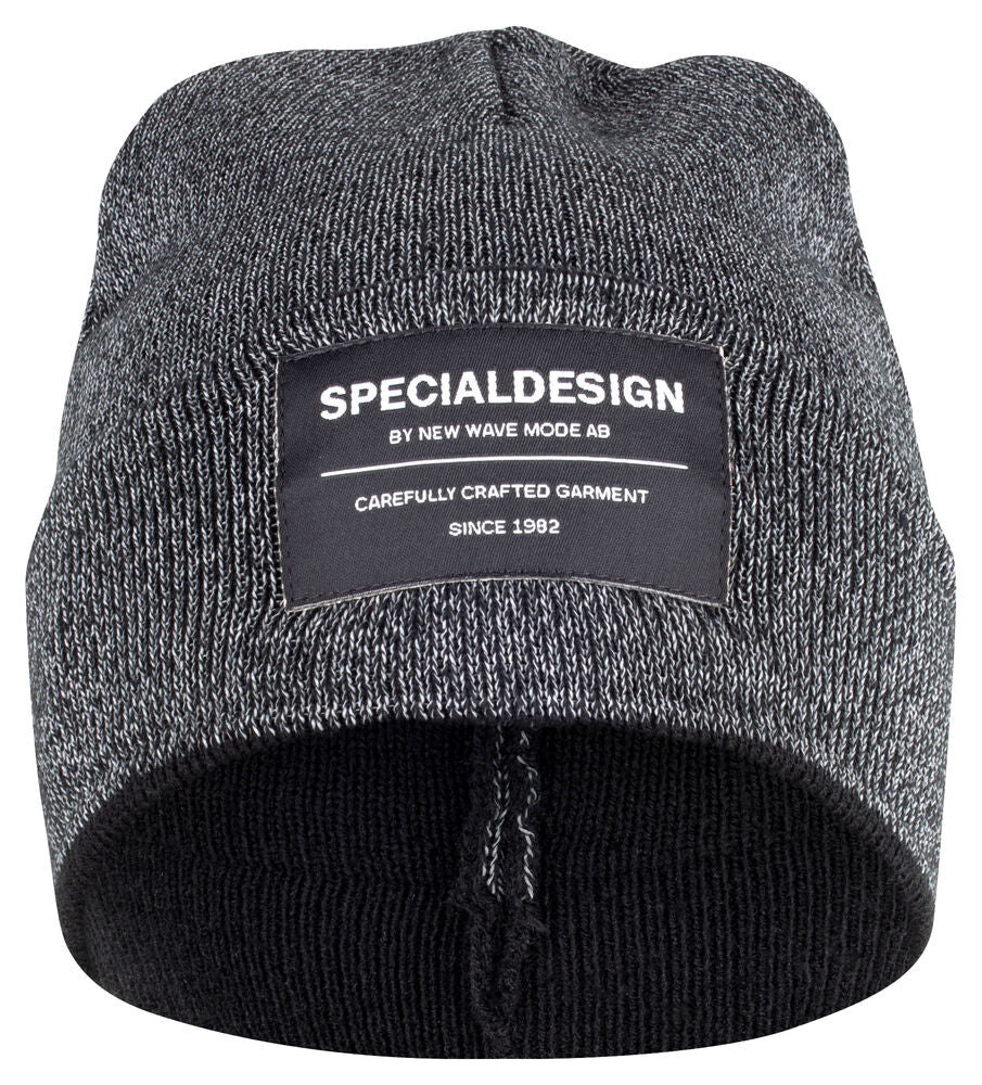 Dubbelstickad mössa i akryl med instickad reflextråd. Uppvik och 4 sömmar i toppen. Reflexindex 300. Pris inkl. en brodyr* alt. en vävd etikett *. Mått B 24 x H 22 cm