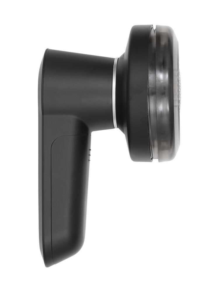 Noppborttagare i svart plast och metall som hjälper dig ta bort ludd och noppor från tröjor, mössor och filtar. Liten, smidig och enkel att använda.