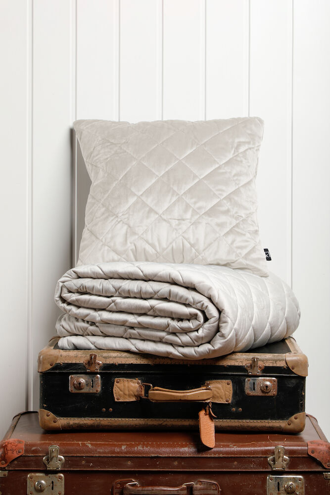 Överkast och kuddfodral av mjuk sammet som ger ett exklusivt inslag i sängen. Det quiltade mönstret ger struktur och sammetstyget ger en härlig glans och lyster.